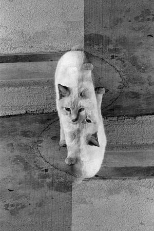 Double exposure picture of a male cat. Shot on Kodak Professional T-Max P3200 black and white negative film.