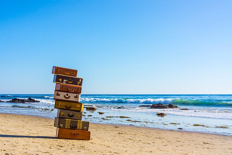 Old Luggage Stacked Together on the Beach